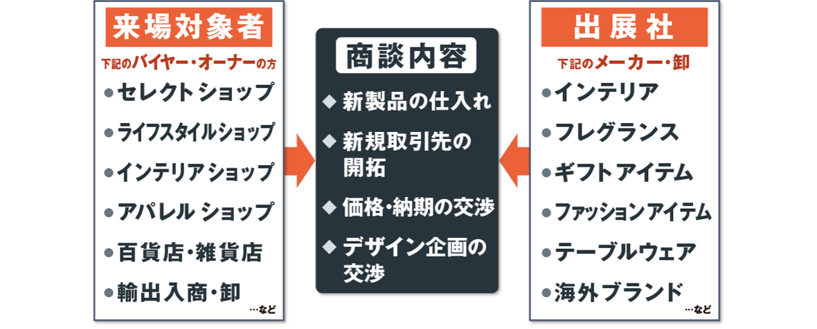 參觀者以商務洽談問目的,展示會為?參展商創造很多有利成交機會,聚集了來自世界各地大量有實力的參觀者(買家),日本最大的商貿展主辦單位
