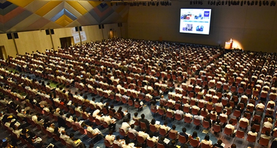 例えばその一つが、展示會開催の3カ月前に開かれる「出展社幹部のための特別セミナー」です。500~1,000名にのぼる出展社の社長?幹部にお集まりいただき、「展示會で売上げを拡大するための方法」を具體的に説明し、時には強くすすめます。